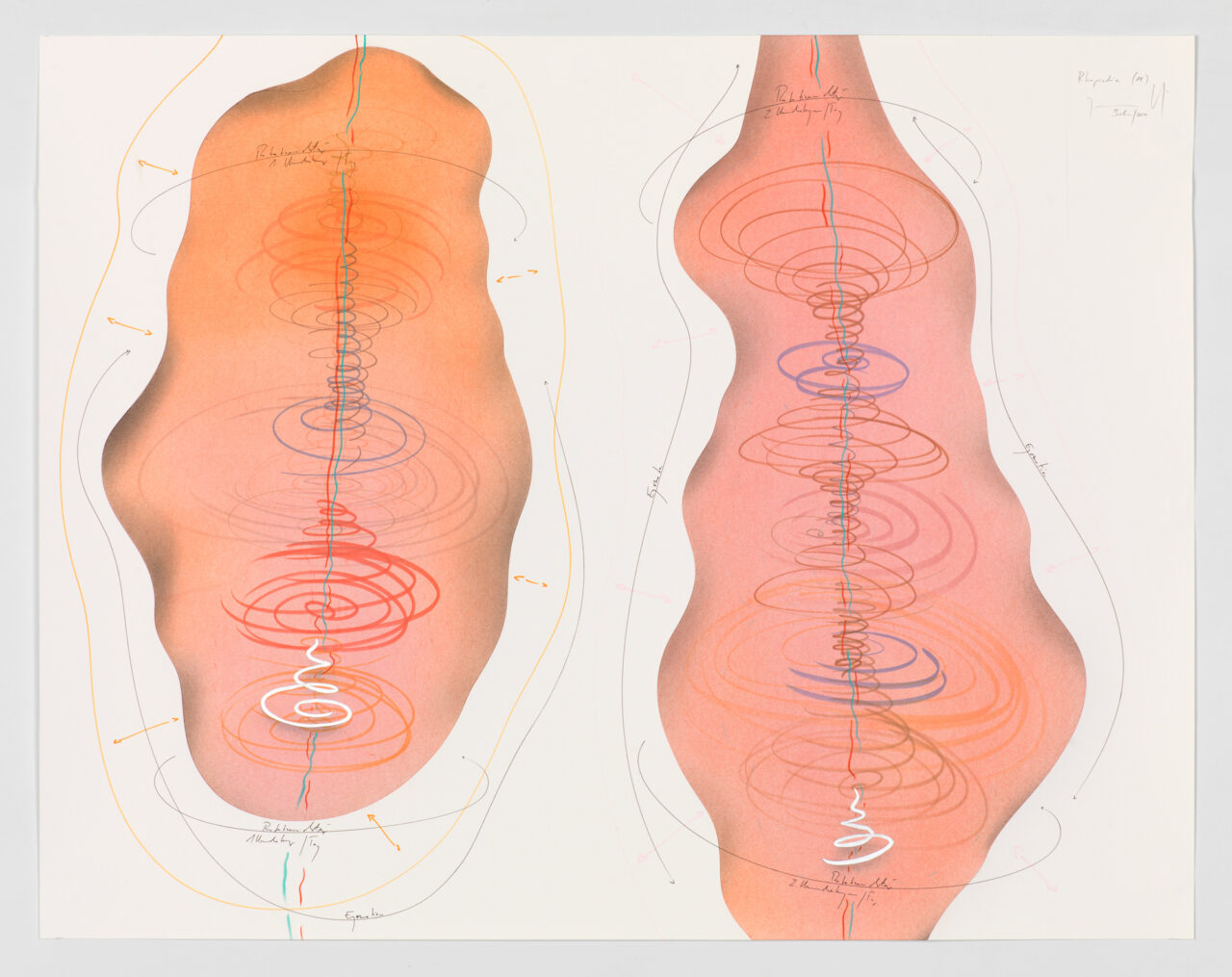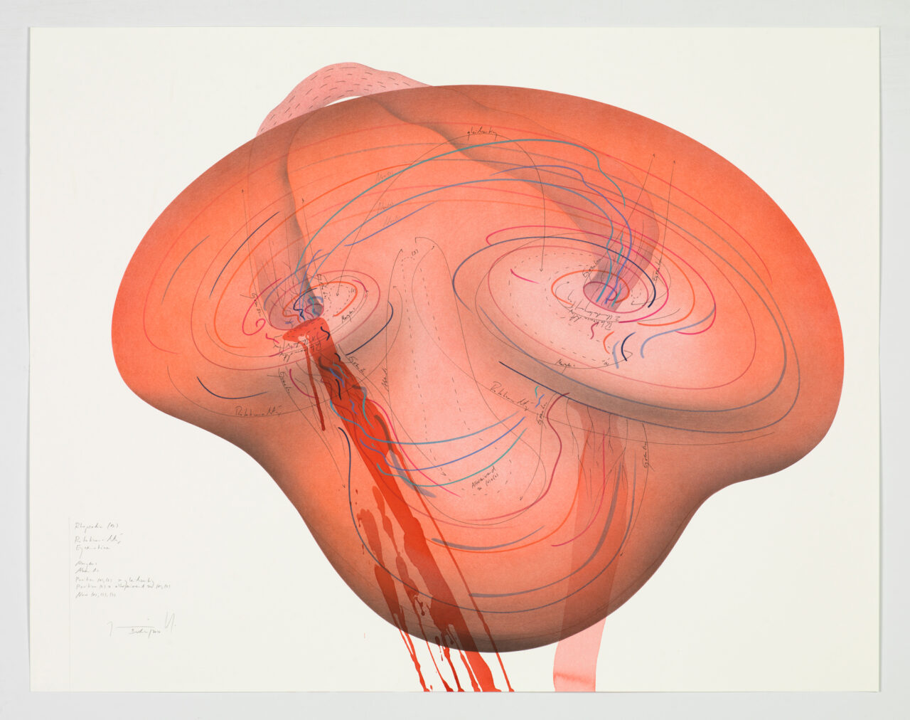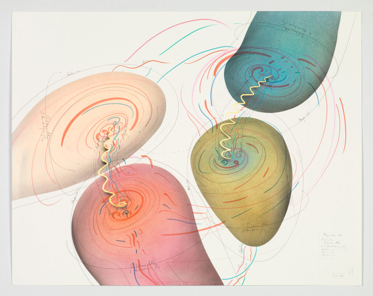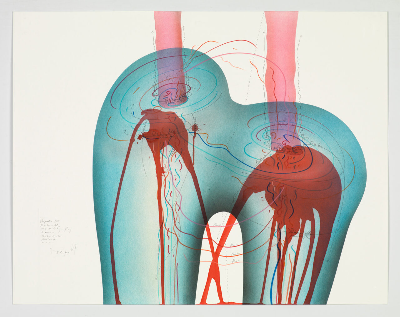 Ink, gold leaf, aluminium leaf, oil chalks, pastels, pencil on paper Unique work Signed