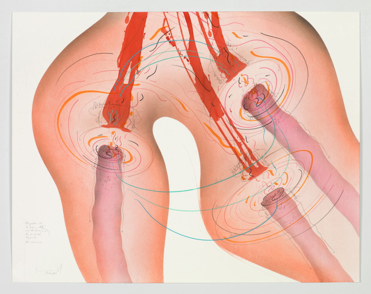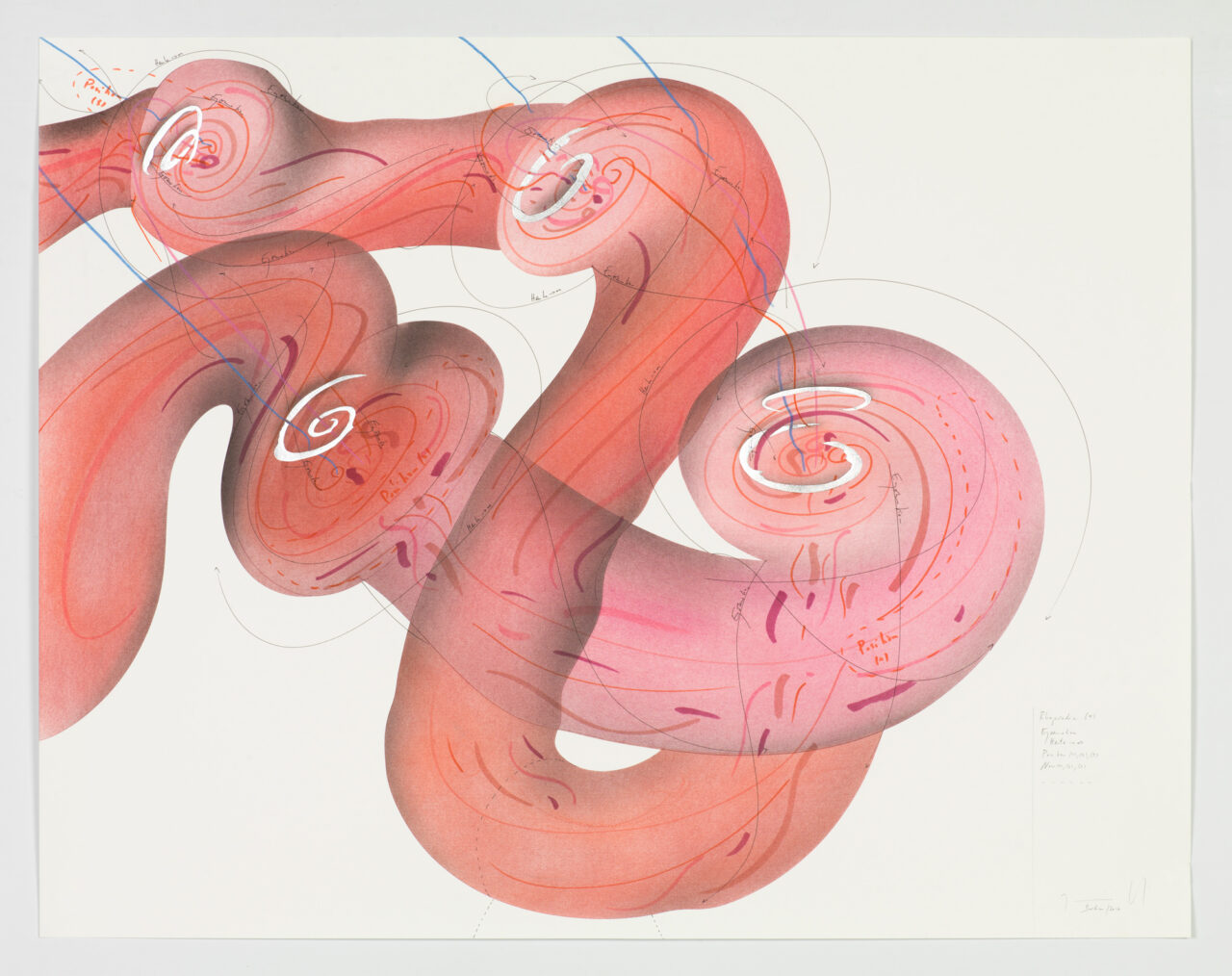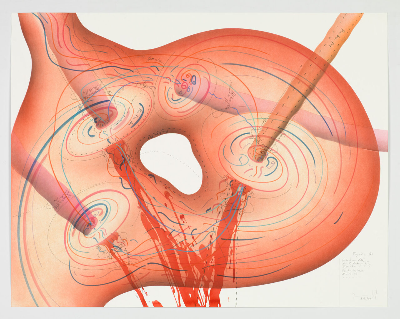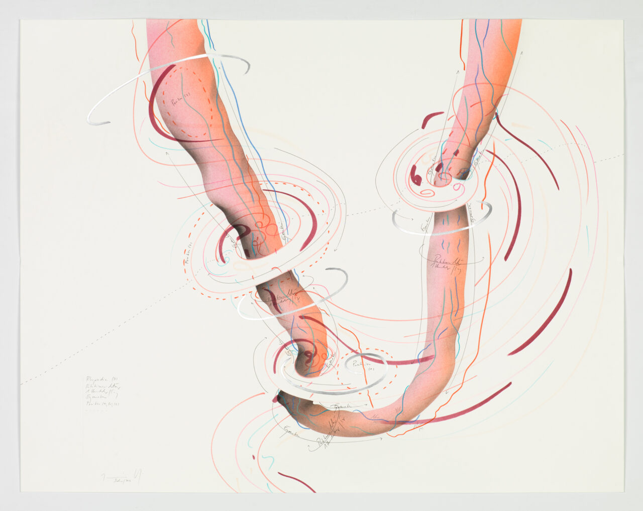 Ink, gold leaf, aluminium leaf, oil chalks, pastels, pencil on paper Unique work Signed