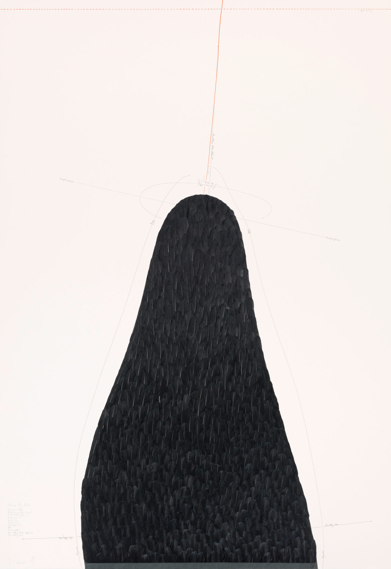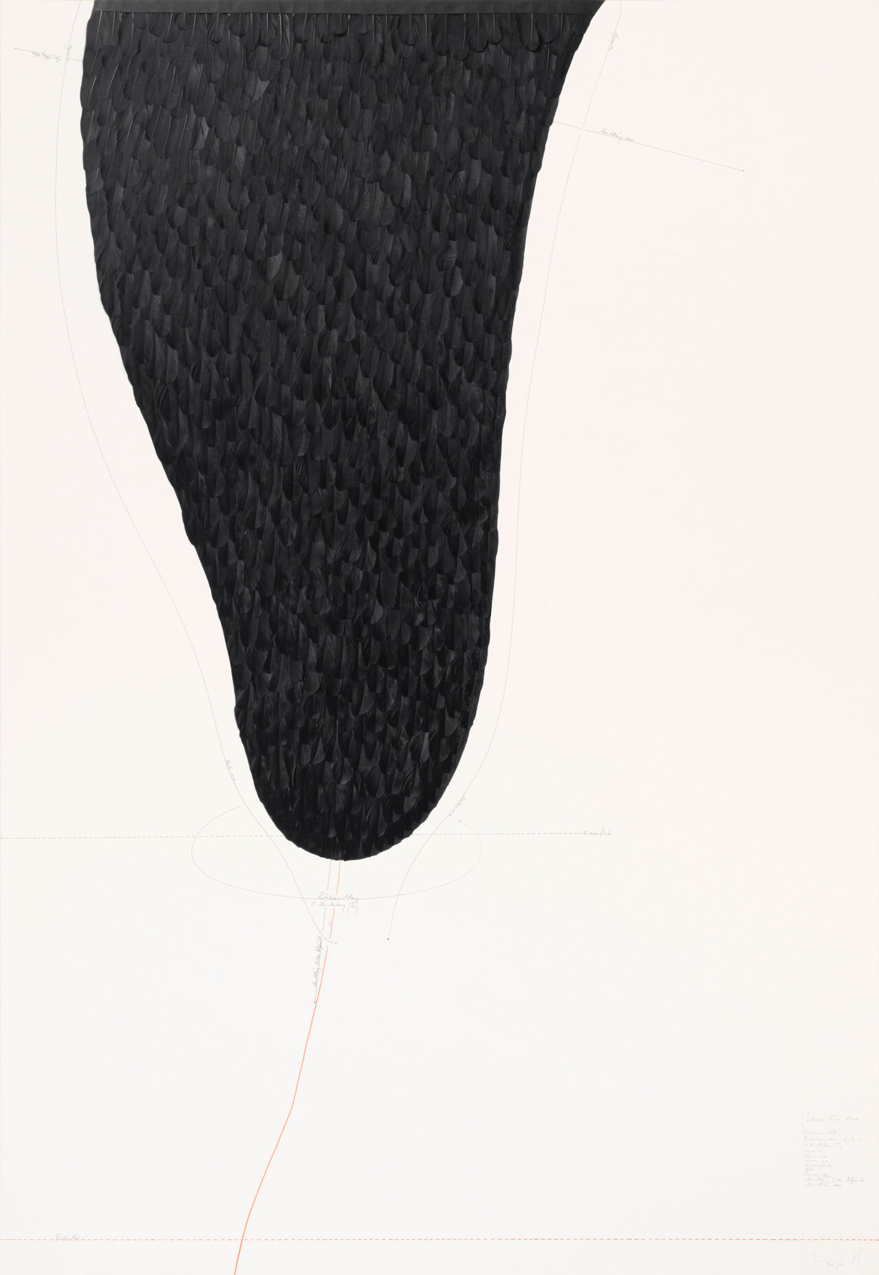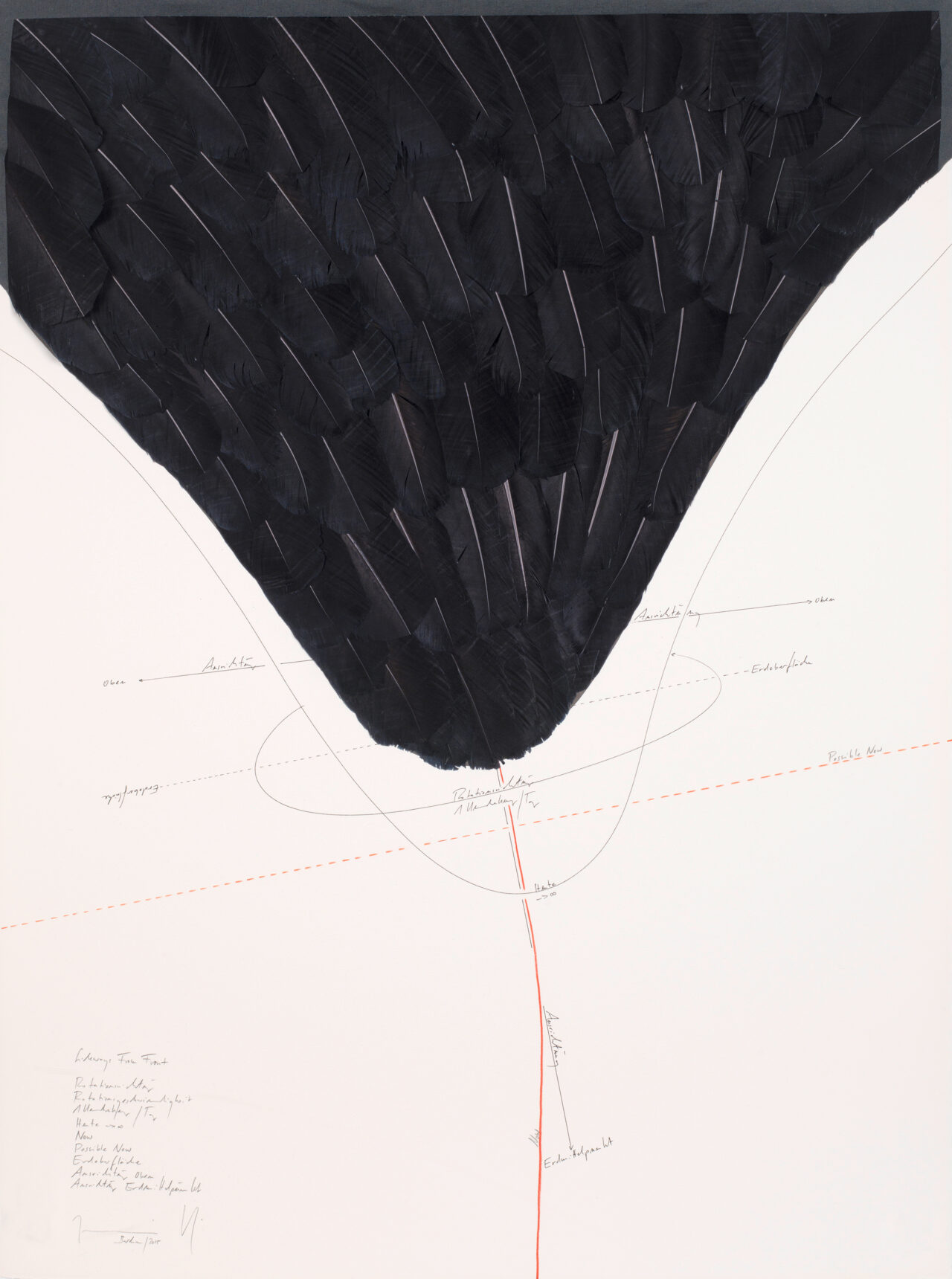 Ink, feathers, oil chalks, India ink, pencil on paper, unique, signed
