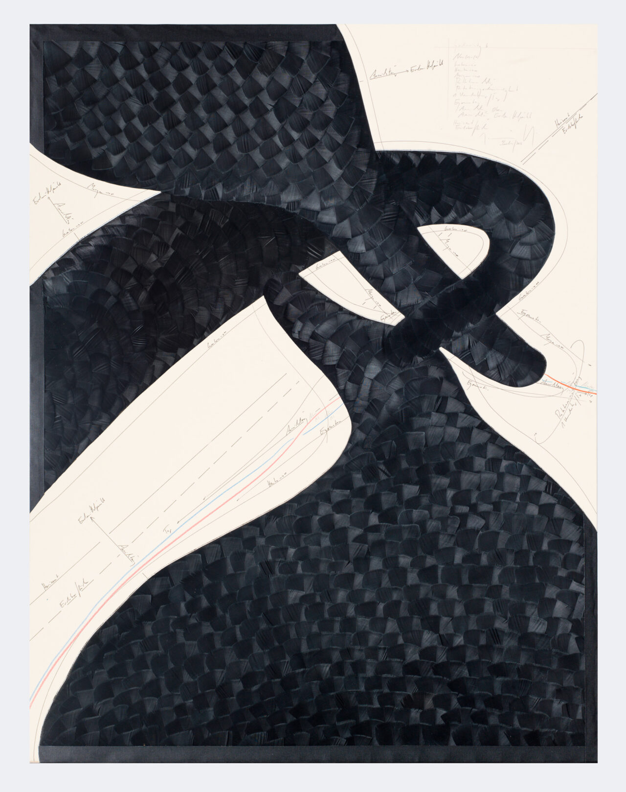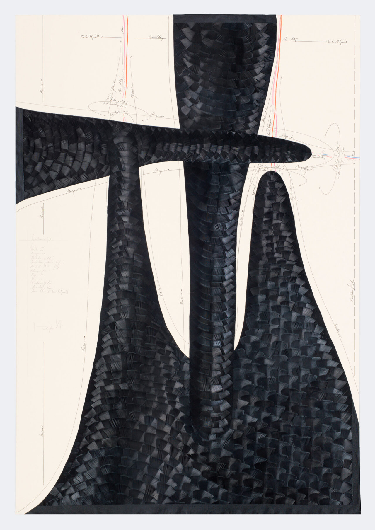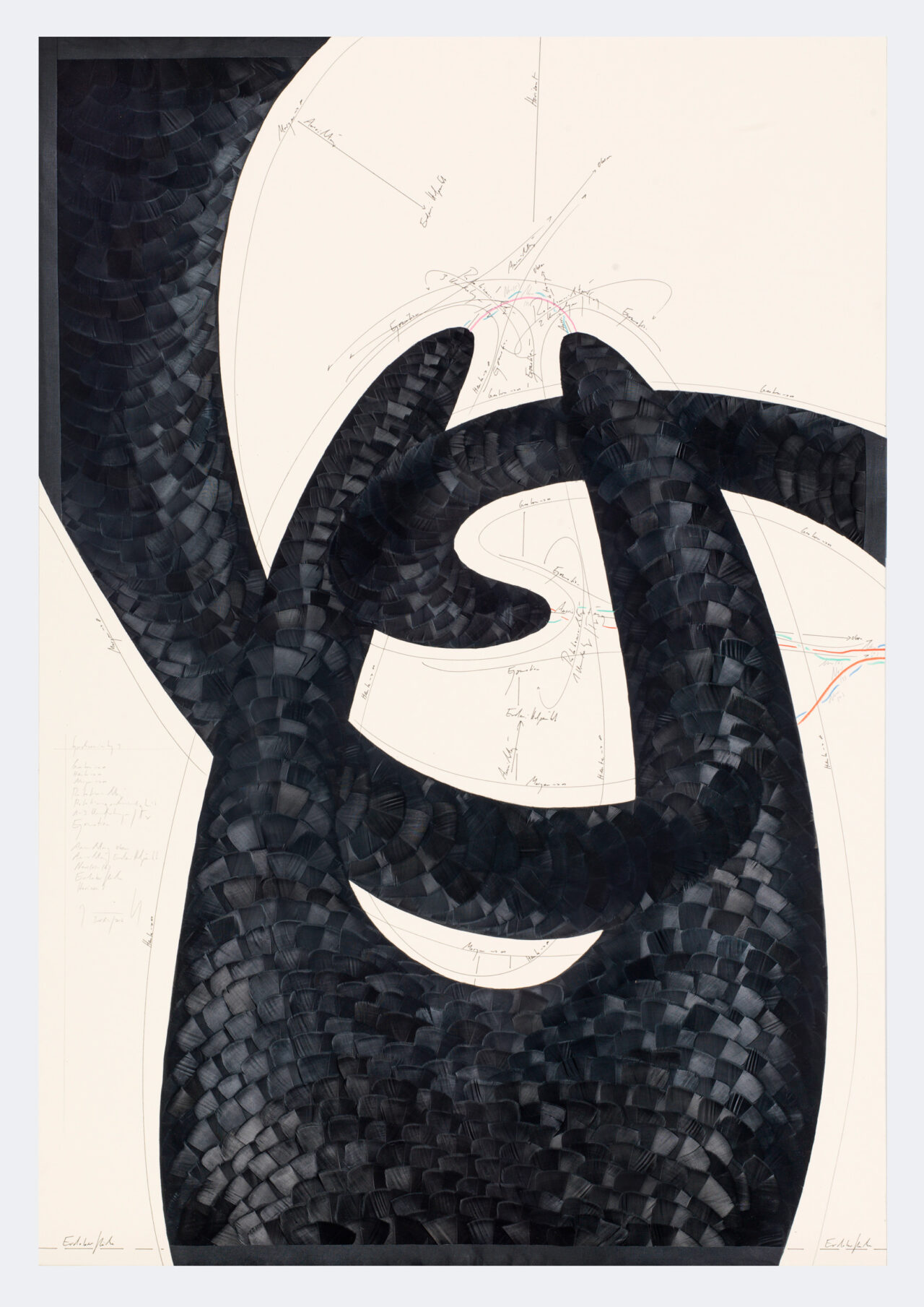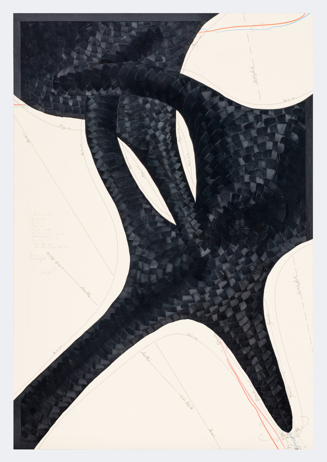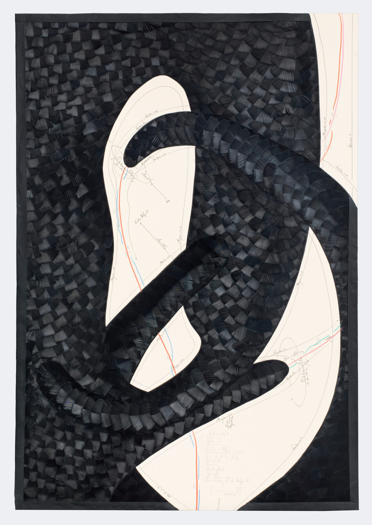 Ink, feathers, oil chalks, pencil on cardboard, unique, signed