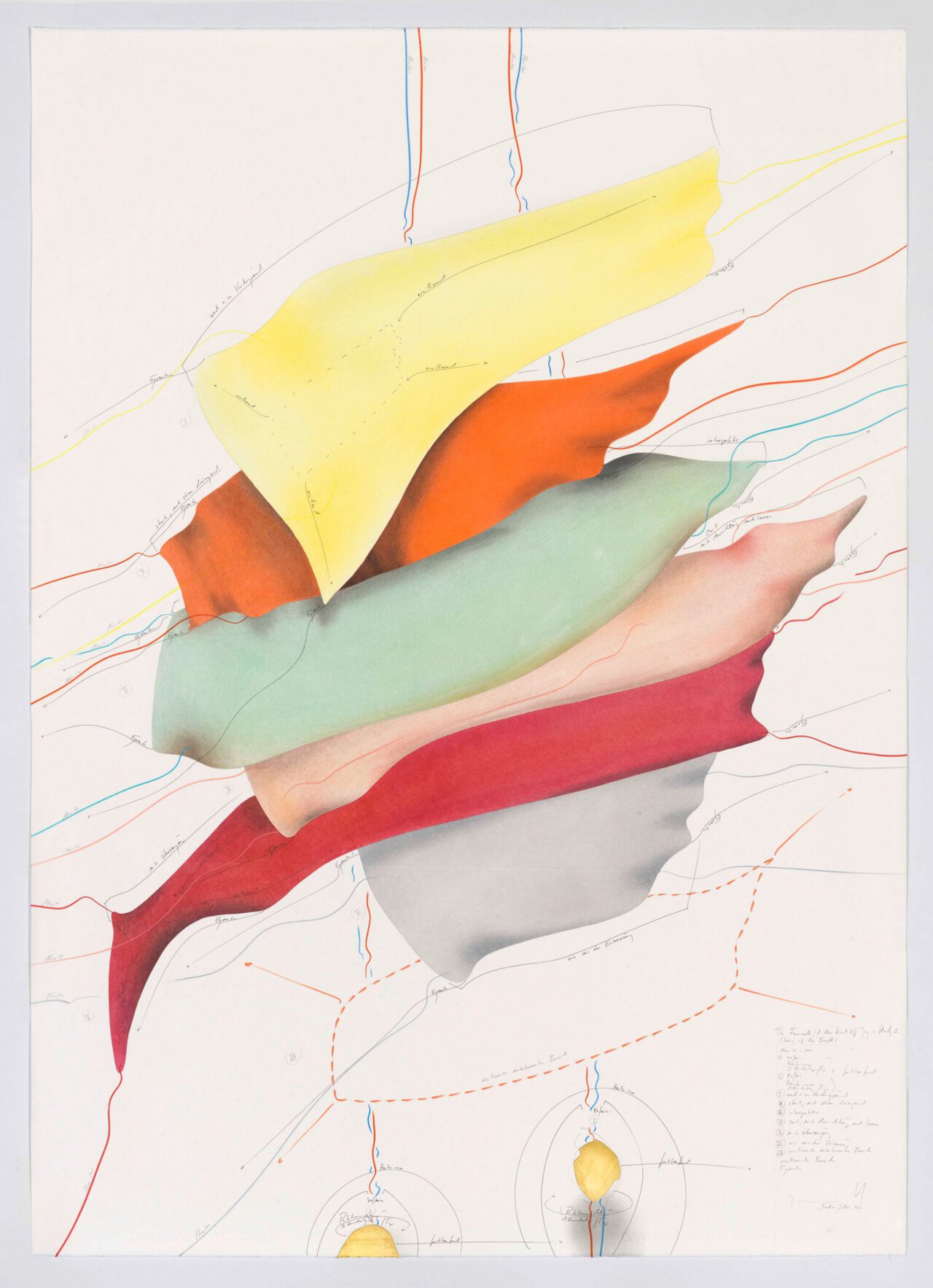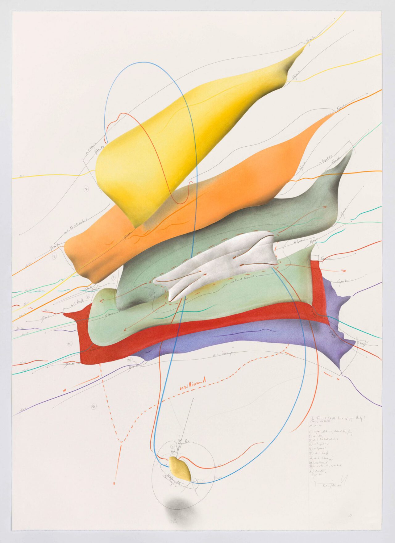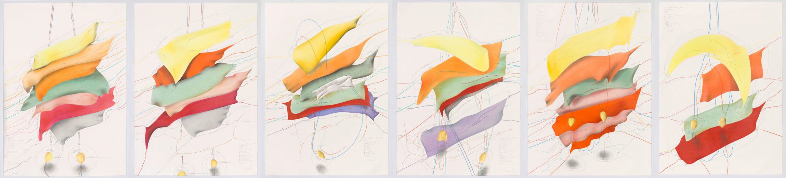 Ink, gold leaf, oil chalks, pastels, pencil on paper, unique, signed