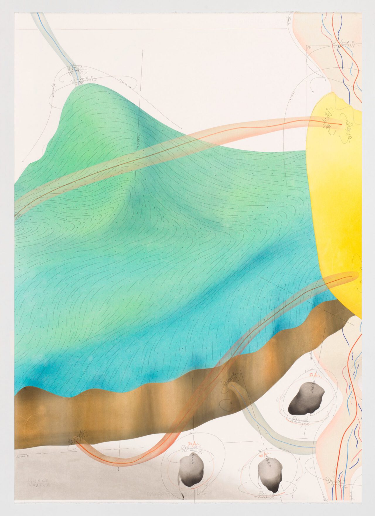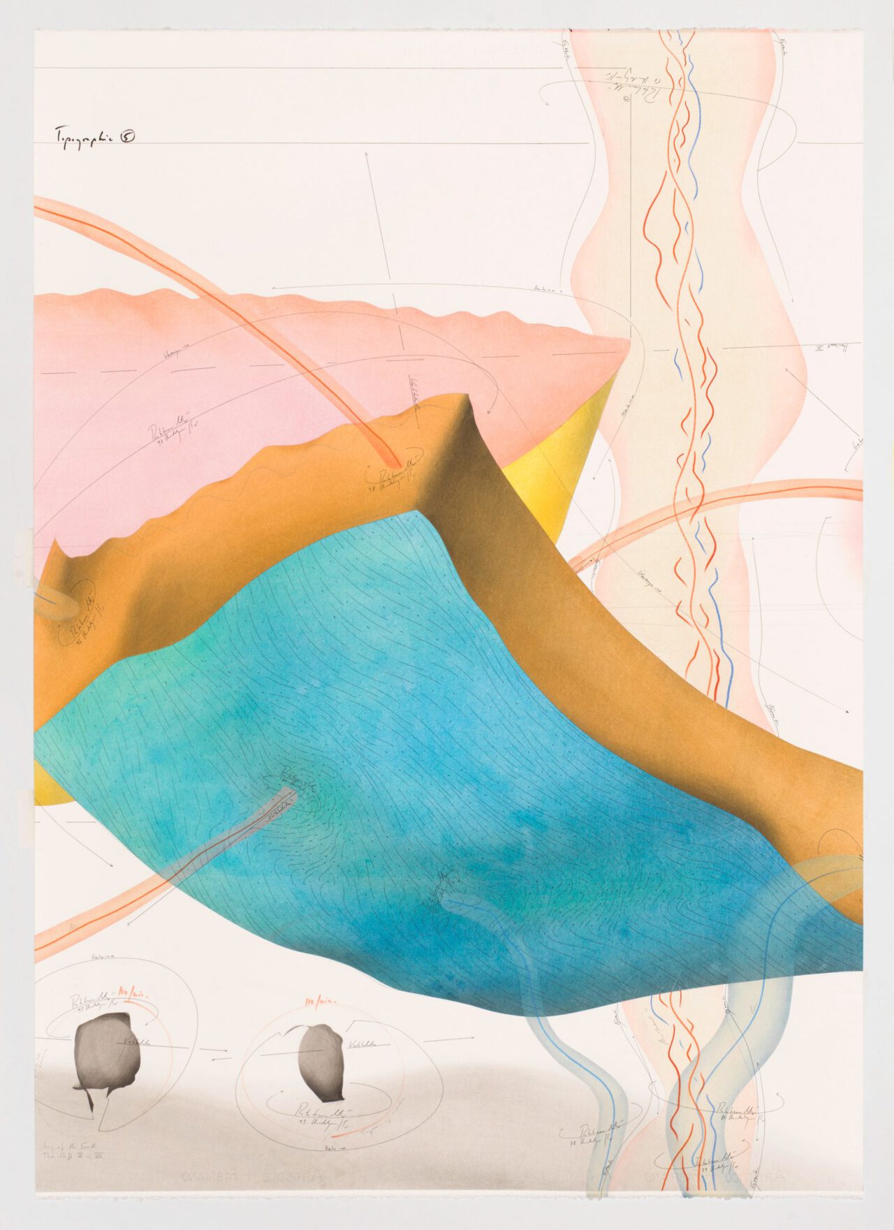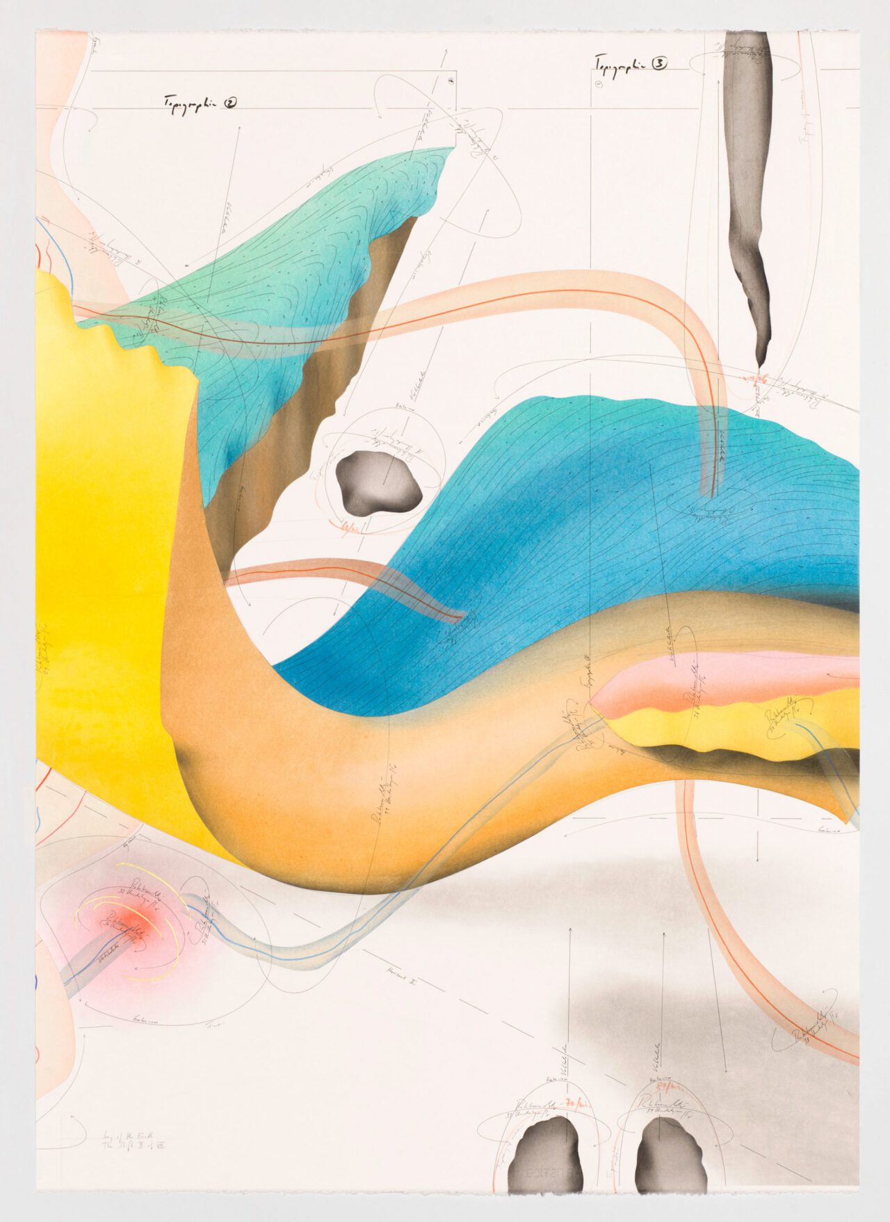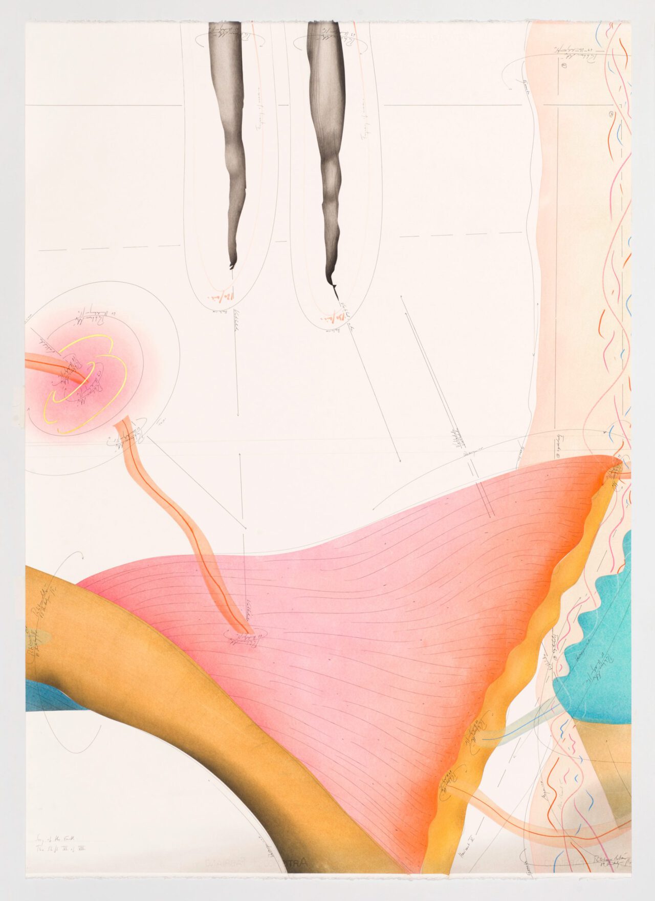 Ink, oil chalks, pastels, pencil on paper, unique, signed