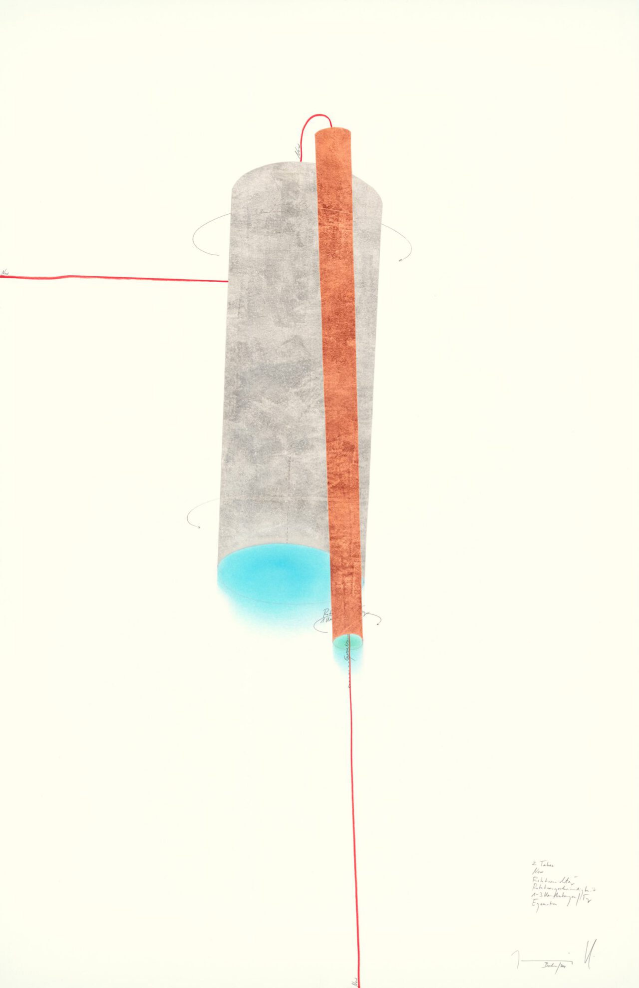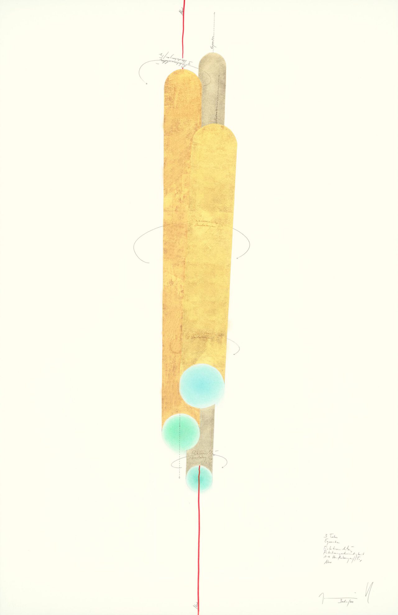 Tinte, Blattgold, Ölkreide, Pastell, Bleistift auf Papier, Unikat, signiert
