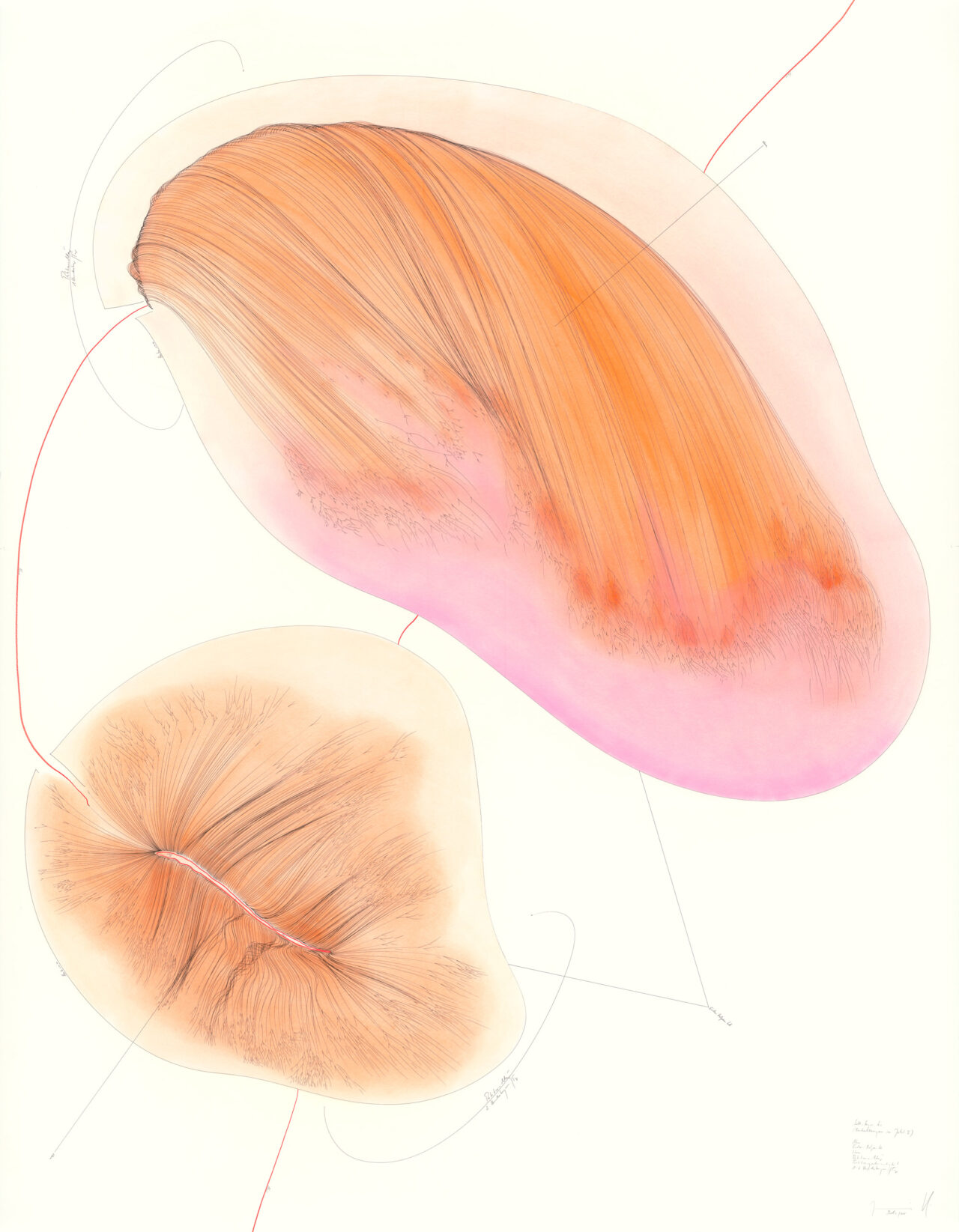 Tinte, Ölkreide, Pastell, Bleistift auf Papier, Unikat, Signiert