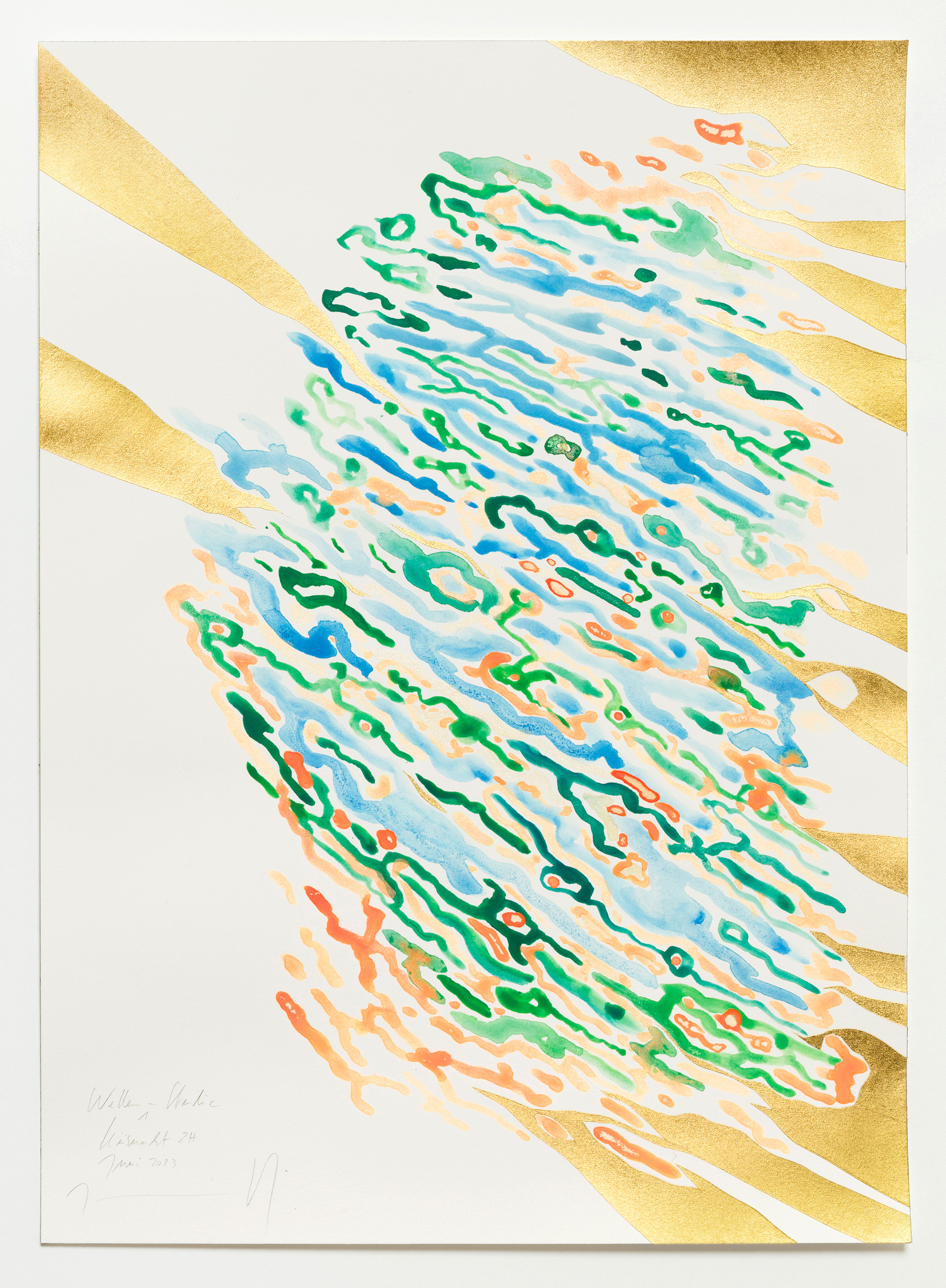 Aquarell, Blattgold und Grafit auf Papier