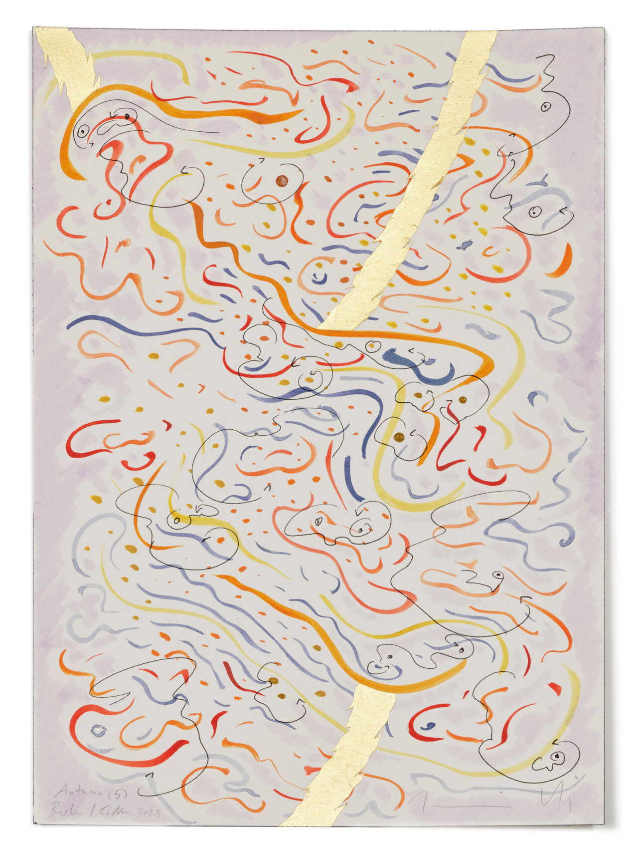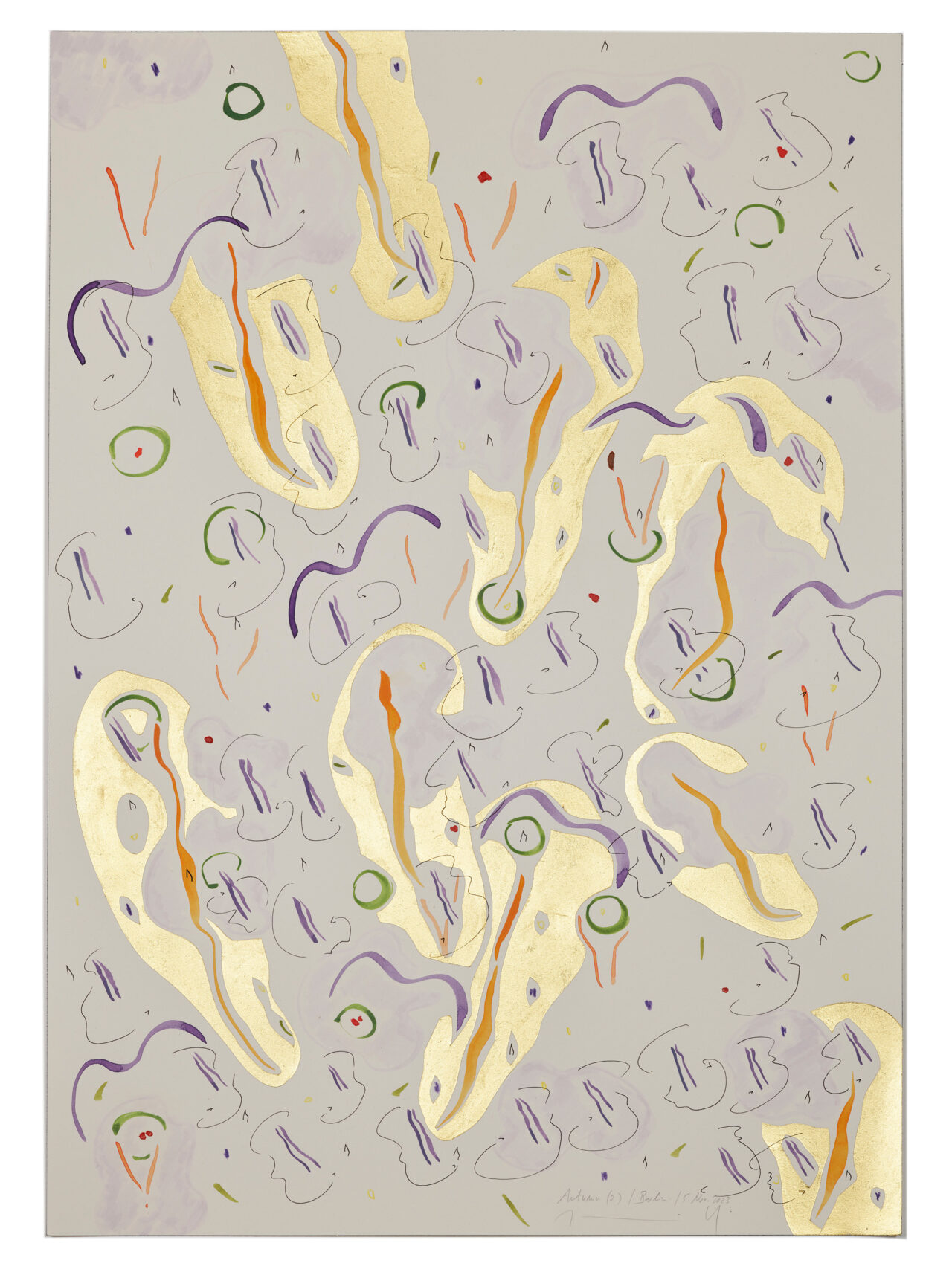 Aquarell, Tinte, Blattgold und Grafit auf Papier