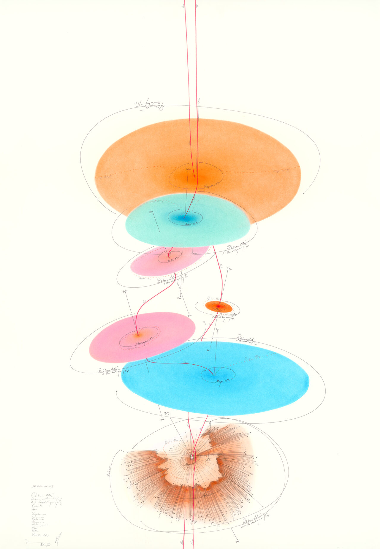 Ink, oil chalks, pastels, pencil on paper, unique, signed